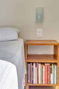 Casa Neruda tem dois pisos. No piso superior. os 3 dormitórios dispõem, ao todo, de duas camas de casal e de uma bicama. Há dois banheiros, sendo 1 suíte.